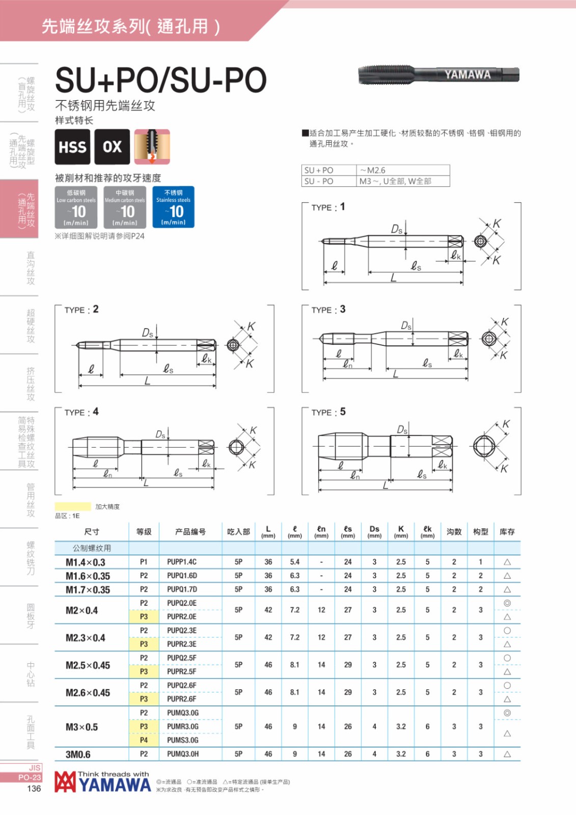 * 適合加工易產(chǎn)生加工硬化、材質(zhì)較黏的不銹鋼、鉻鋼、鉬鋼用的通孔用絲攻。
